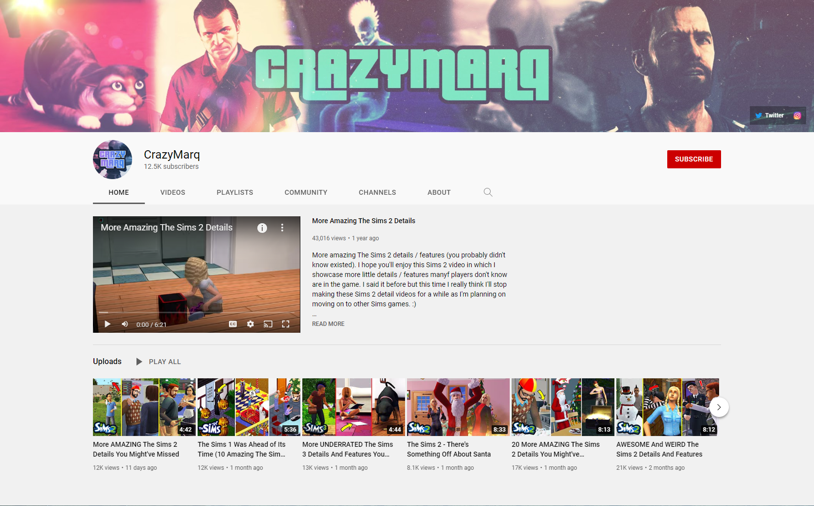 I primarily post on YouTube, where I go by the username CrazyMarq. I also have an Instagram account @crazy.marq and a Twitter account @CrazyMarq where I share behind the scenes stuff, post real life updates, channel news, and gameplay pictures that don't fit my channel.